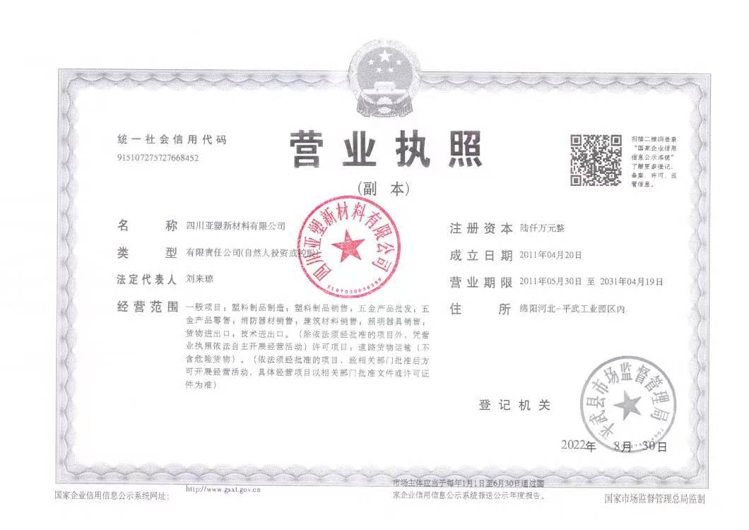今天是:2024-08-13 歡迎來(lái)到四川亞塑新材料有限公司官方網(wǎng)站!